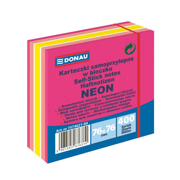Bloček Donau 76 x 76 mm, mix neónových farieb, ružová, 400 lístkov