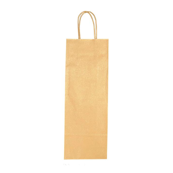 Papierová taška na víno. Farba zlatá. Ušká stáčané. Gramáž papiera 110g. Cena za kus. Rozmery v mm