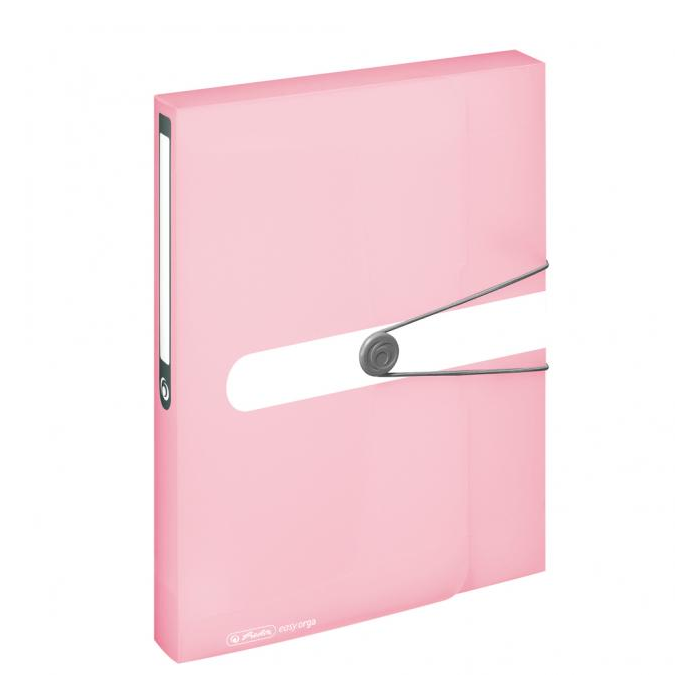 Box z polypropylénu Pastell na dokumenty formátu A4. Kapacita 400 listov, šírka chrbta 4 cm. Zatváranie sivou gumičkou o sivý plastový krúžok, nalepený chrbtový štítok na popis obsahu. Väčšie balenie 10 ks. Farba priehľadná ružová.