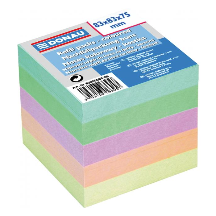 Farebné (pastelové farby) nelepené poznámkové bloky v tvare kocky. Vhodný ako samostatné poznámkové bloky alebo ako náplň do škatuľky DO491001.